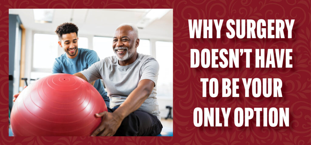 If you feel you may be on the path to needing surgery, don’t hesitate to give our team a call. We’ll provide specific information about how our physical therapists can help you avoid or delay surgery.